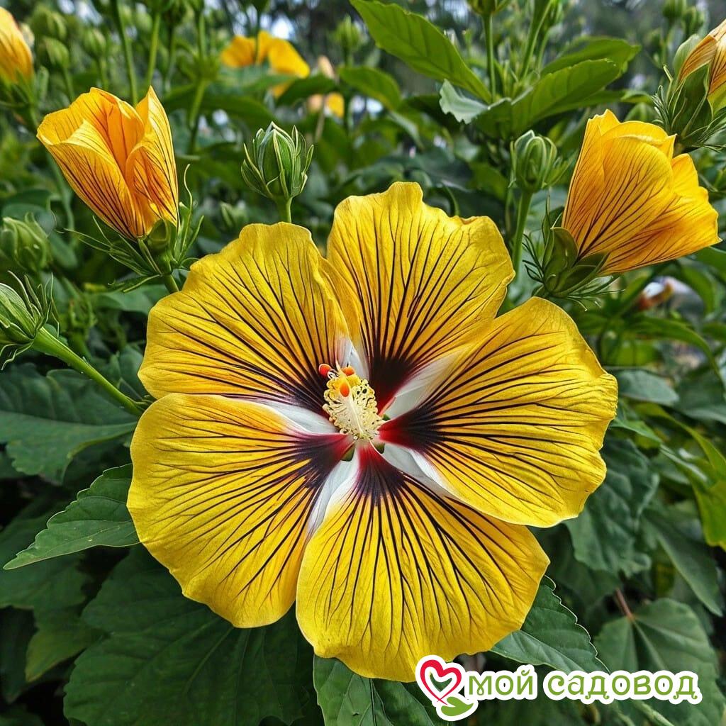 - Тёмно-жёлтый цвет с оранжевой серединой: главная особенность этого сорта — его тёплая и насыщенная окраска. Цветки гибискуса «Свит Соната» имеют насыщенный тёмно-жёлтый цвет, который часто называют янтарным или медовым.