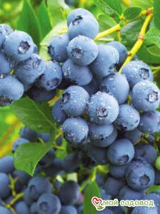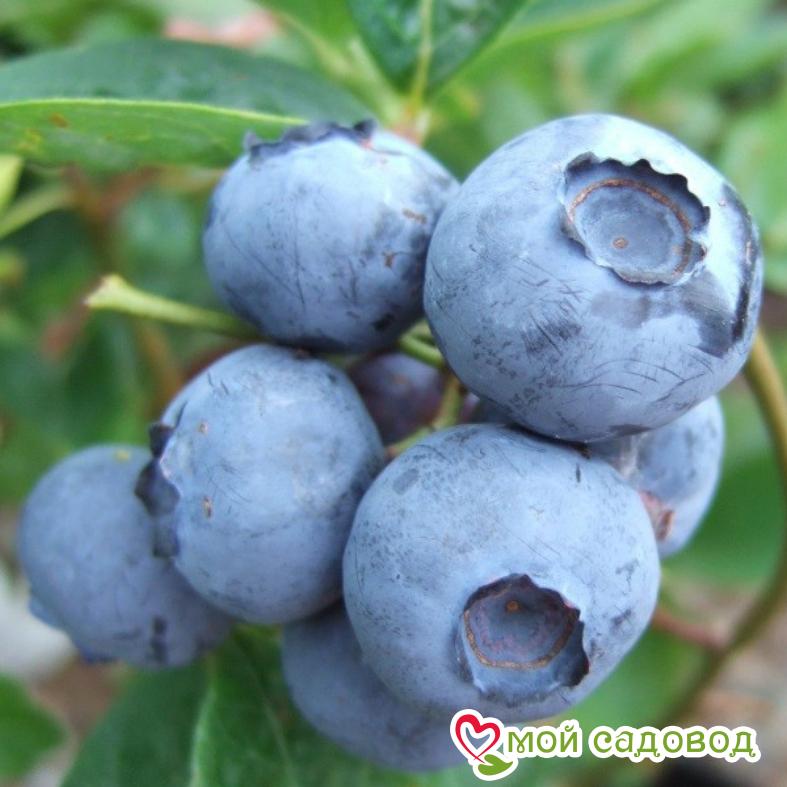 ☀️ Высаживать саженцы голубики с закрытой корневой системой можно на протяжении всего вегетационного периода (весна-лето-осень). Посадку голубики весной в открытый грунт следует проводить после исчезновения угрозы возвратных заморозков, когда воздух прогреется до 10-15⁰С, но до распускания почек (в апреле-мае). Таким образом, саженец будет иметь достаточно времени, чтобы укорениться и адаптироваться к новым условиям. Осенью к посадочным работам приступают в конце сентября-начале октября.. после того, как растение закончит вегетацию и останется без листьев. При этом оно будет иметь в своем распоряжении 3-4 недели до устойчивых морозов для укоренения. Голубика Блюголд — ягоды голубики этого популярного сорта светло-синие, с плотной ароматной мякотью. Да и сами кустики пышные и красивые, поэтому станут прекрасным украшением любого сада. Однако стоит учесть, что раскидистость – это одновременно и недостаток кустов этого сорта, ведь они требуют сильной обрезки. Блюголд – ранний сорт. Плоды приобретают насыщенный цвет еще в начале лета и дружно созревают к середине июля. С одного куста собирают от 4,5 кг ягод даже в не самые урожайные годы. Эта голубика стойко выдерживает морозы до –35°С, поэтому подходит для выращивания в северных регионах. Слабая сторона сорта – его ягоды быстро завяливаются, мумифицируются, особенно если лето стоит жаркое. ПОСАДКА Перед посадкой полейте растение в контейнере и дайте ему постоять, чтобы можно было легко вынуть саженец из контейнера не повредив корневую систему. Подготовьте посадочную яму глубиной и шириной примерно 0,5 м. Добавьте в неё кислую песчано-земляную смесь (лучше если это будет специализированный грунт с повышенной кислотностью рН) и перемешайте с почвой, вынутой из ямки. Можно улучшить структуру почвы, добавив кислого торфа. Посадите растение так, чтобы оно оказалось на несколько сантиметров ниже, чем оно сидело в горшке. Слегка уплотните землю вокруг саженца и еще раз полейте как следует. Для предотвращения испарения влаги покройте почву слоем мульчи (опилки, кора) толщиной 5-8 см.  Это позволит решить и ещё ряд проблем. Во-первых, слой мульчи позволит избавиться от сорняков, во-вторых, отрегулирует водно-воздушный и температурный режим верхнего слоя почвы (т.е. почва не пересыхает и не перегревается), в третьих, он улучшит освещённость куста, в четвёртых, поможет бороться с болезнями.
