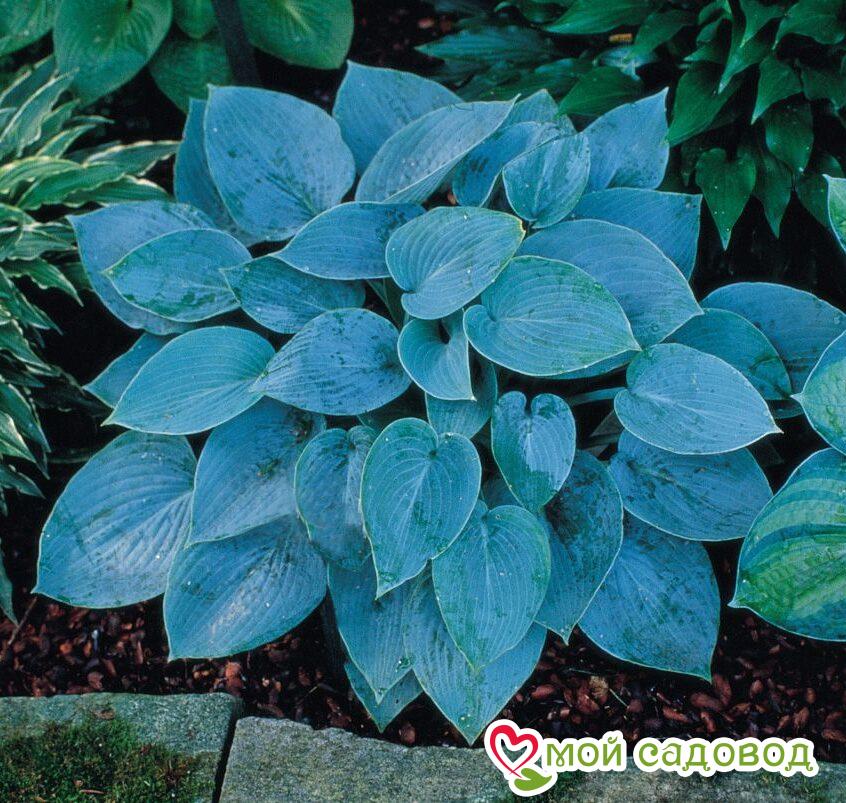 «Голубой ангел» («Блю энджел», «Blue angel») – самый крупный сорт голубых функий. В хороших условиях высота куста этой хосты достигает 100 см. Листья очень декоративны: крупные (до 45 см длиной), сизо-голубого цвета, слегка волнистые. Ярко выраженные прожилки делают листву гофрированной. Пышный куст имеет куполообразную форму, диаметром чуть больше метра, нижние листья почти лежат на земле. Если ищите неприхотливое тенелюбивое растение для сада – отлично подойдёт хоста. Культура прекрасно себя чувствует под сенью деревьев, вблизи водоемов, на низинных альпийских горках. Посадка хосты осуществляется весной, начале, конце лета. Уход заключается в регулярном поливе, прополке, рыхлении, мульчировании почвы. Место. Выбирайте для куста полутень – под сенью деревьев, вблизи ручья, озера, в низинах участка. Зона для выращивания должна быть защищена от сильных ветров. Время посадки. Начинайте укоренять растение весной – в апреле-начале мая. Возможна и осенняя посадка хосты – с конца августа до конца сентября. Функия должна успеть укорениться до морозов. При осенних работах не нужно заранее готовить грунт, просто обильно полейте хосту за 2-3 часа до посадки. Почва. Hosta любит суглинистую или подзолистую землю с песчаным слоем на поверхности (10 см). Выращивание цветов должно происходить в почве с pH 6,5-7,5. Готовьте землю с осени – рассыпьте садовый компост, листовую землю, древесную золу, костную муку или перепревший навоз слоем 10 см, перекопайте грунт на глубину штыка лопаты.