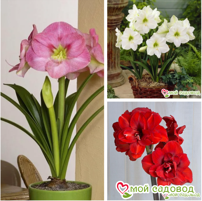 В комплект вошли три самых любимых сорта Амариллисов, которые выбирают наши покупатели! АМАРИЛЛИС (ГИППЕАСТРУМ) СЬЮЗАН – сорт амариллиса, который выращивают в контейнерах на подоконниках, балконе, террасе и на открытом грунте. Листья удлинённые, светло-зелёные. На одном цветоносе до 50 см длиной формируется до пяти бутонов. Цветы крупные, диаметром до 18 см, тёмно-розовые с яркой жёлтой серединой. Купите луковицы амариллиса (гиппеаструма) Сьюзан, и вашу клумбу украсят шикарные растения с пышным цветением. АМАРИЛЛИС ДАБЛ ДРАКОН – яркий сорт луковичных цветов семейства Амариллисовых. На одном цветоносе распускается до четырёх алых махровых цветков, смотрящих вверх. Диаметр этих броских цветков до 15-20 сантиметров. Высота цветка 60 см. АМАРИЛЛИС АНТАРКТИКА — предназначенное для выращивания в комнатных условиях, так же можно выращивать в оранжерее или на клумбах открытого грунта. Высота растения 50-70 см. Цветок крупный, махровый, белый с розовым отливом. Эффект перламутра. Цветение: круглый год. Высадка луковицы На дно горшка укладываем дренаж из керамзита или мелких камешков. Слой в 2 – 2,5 см. Сверху насыпаем землю, по центру ставим луковицу и засыпаем ее по бокам, оставляя верхнюю треть луковицы без земли. Поливаем отстоянной водой комнатной температуры. После посадки луковицы, примерно через месяц должно наступать цветение, которое будет продолжаться в течение 2-х или 3-х недель. Место Амариллис очень любит светлые открытые места. Идеально подойдут южные и юго-восточные окна. На лето можно высаживать в открытый грунт с южной стороны, в защищенном от ветров месте. Не любит сквозняков, особенно в зимнее время. Температура Во время бурного цветения, ему будет комфортно при температуре в +23 – 25 °C. В ночное время, допустимо снижение температуры до +18 – 20 °C. Чтобы продлить срок цветения, можно понизить температуру окружающей среды примерно до 18 °C и убрать излишнее освещение. ПРЕИМУЩЕСТВА ПОКУПКИ ПОСАДОЧНОГО МАТЕРИАЛА В ПИТОМНИКЕ МОЙ САДОВОД: Питомник реализует здоровый посадочный материал. Контроль перед отправкой получателю, делает невозможной пересортицу. Консультанты магазина в режиме онлайн отвечают на все вопросы. Удобный способ оплаты и доставки. Оперативное рассмотрение претензий, своевременная замена товара и возврат денежных средств.